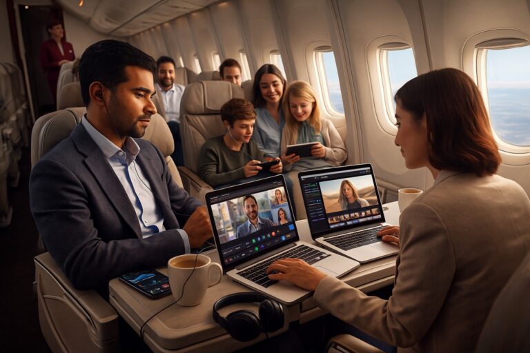 La compagnie Qatar Airways et Google annoncent des contenus générées à bord d’un vol grâce au Wi‑Fi Starlink et aux...
